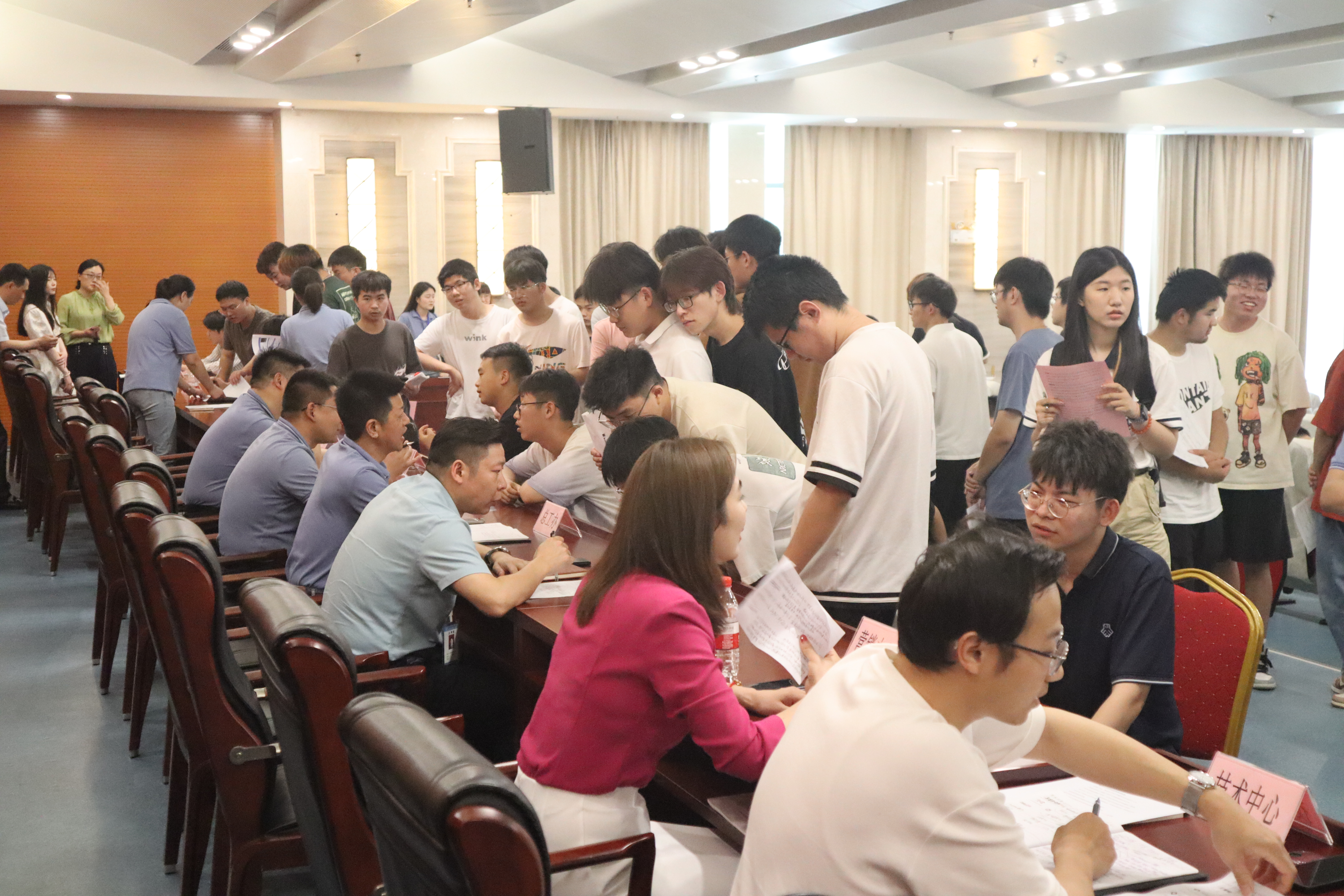 宣講會(huì)結(jié)束后,各公司部門的面試官早已滿懷求賢之心落座等待。應(yīng)聘者根據(jù)個(gè)人情況選擇投遞方向現(xiàn)場(chǎng)投遞,并可以直接“面對(duì)面”交流,面試了解公司部門的詳細(xì)情況,現(xiàn)場(chǎng)還備有紙質(zhì)簡(jiǎn)歷表,為應(yīng)聘者提供便利。