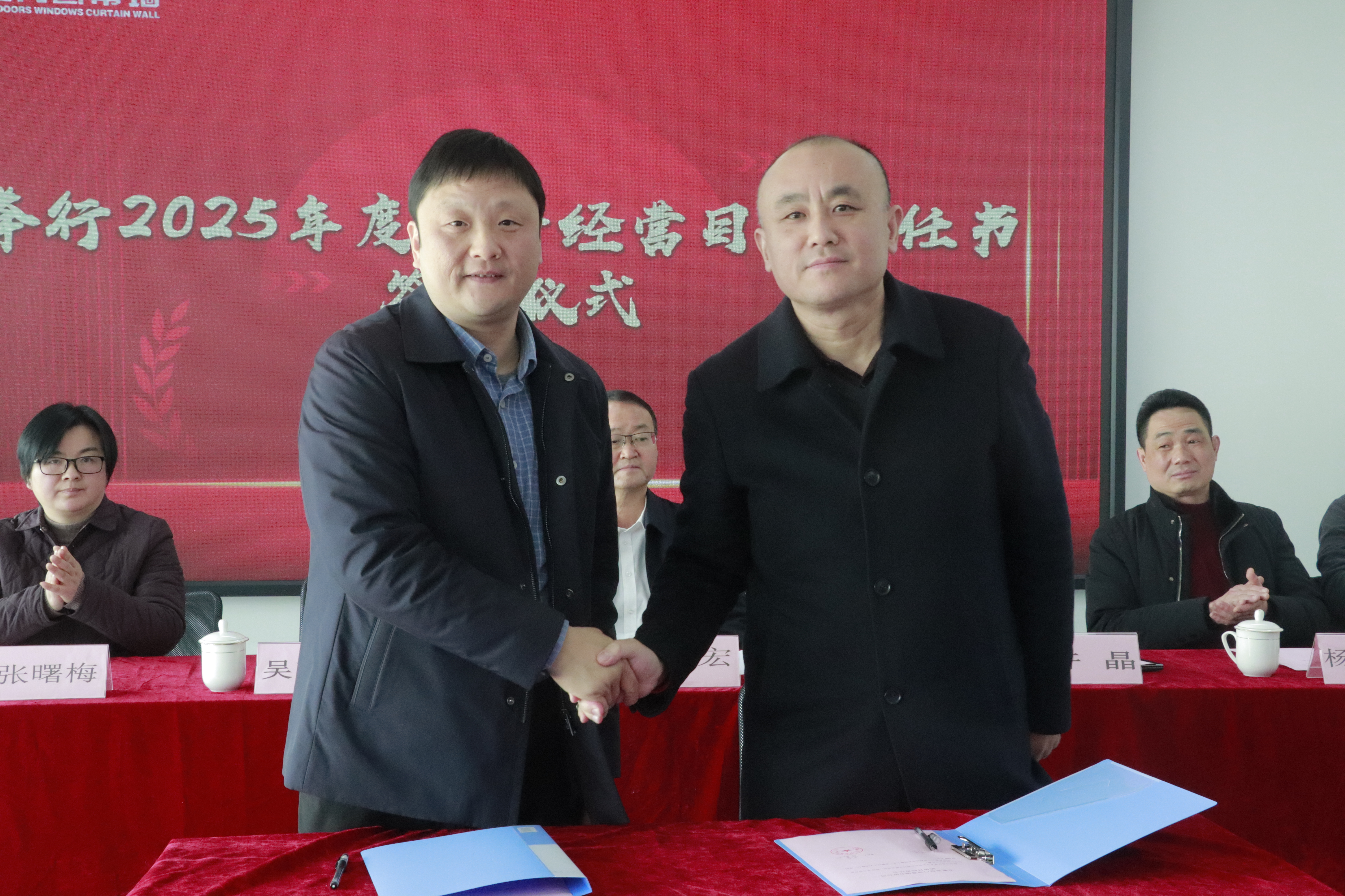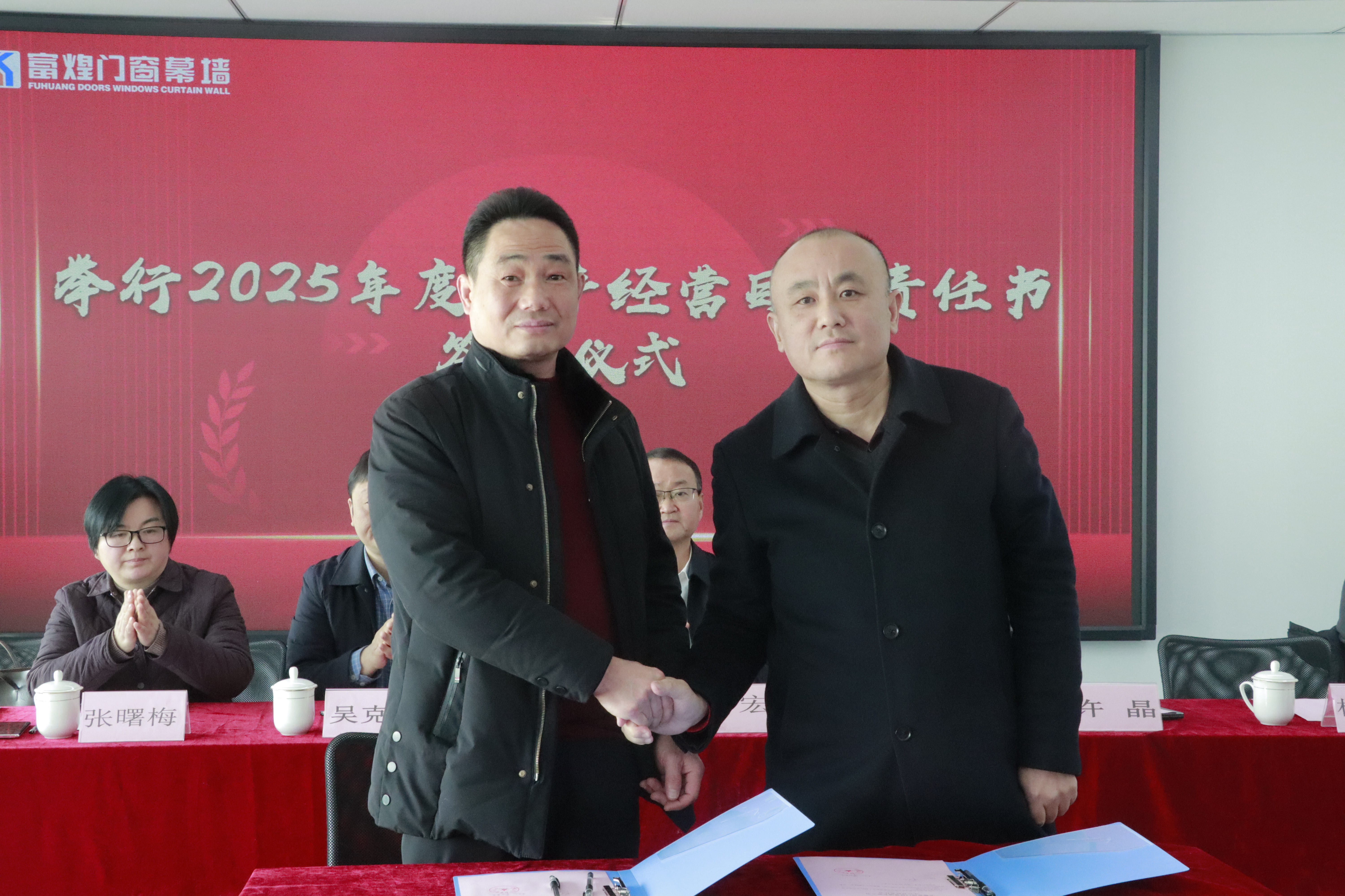 隨后,安徽富煌門窗幕墻有限公司總經(jīng)理許晶分別與副總經(jīng)理吳克云、楊建生簽訂2025年生產(chǎn)經(jīng)營(yíng)目標(biāo)責(zé)任書(shū)。
