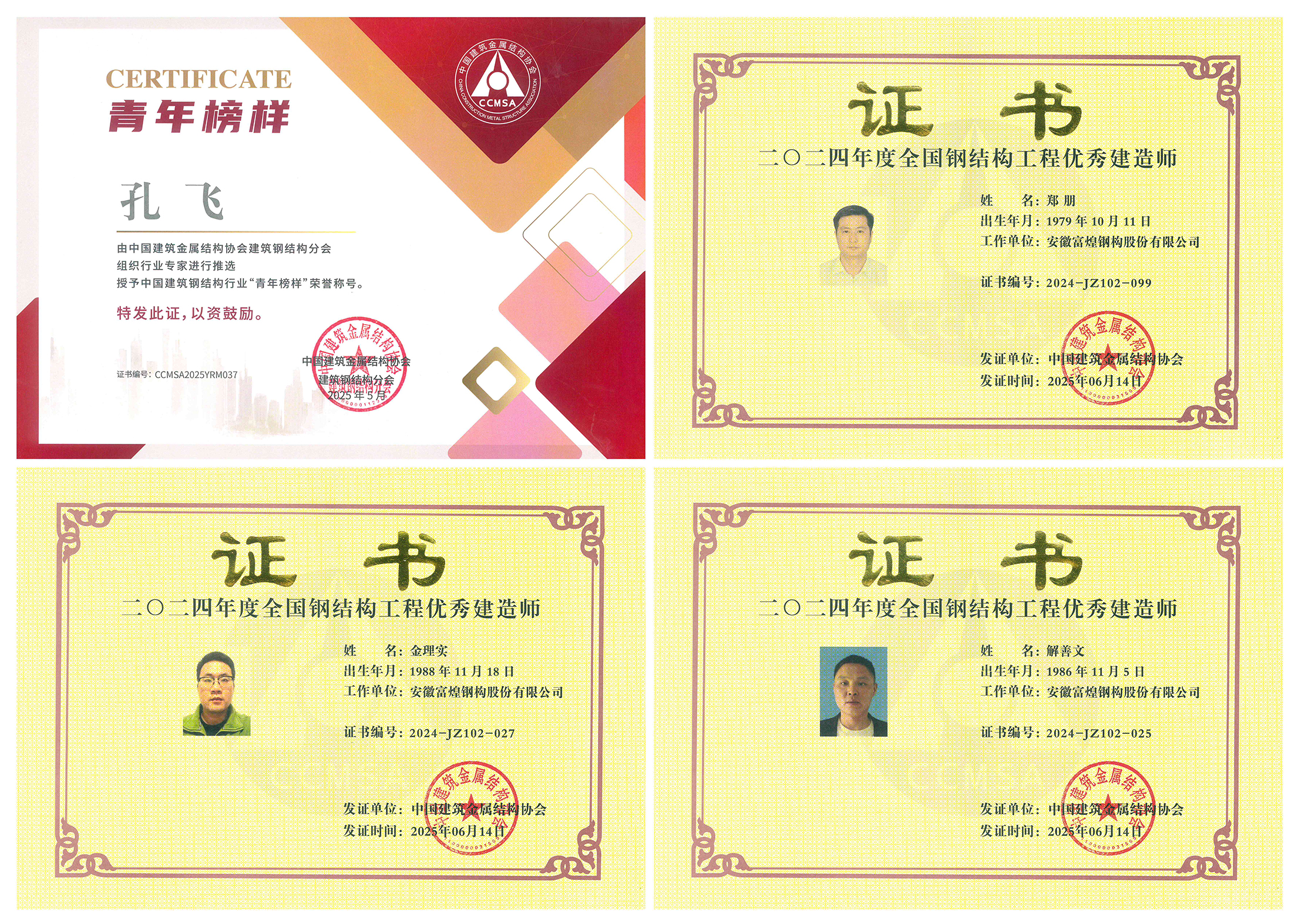 本屆大會以“數(shù)智賦能、協(xié)同創(chuàng)新,實(shí)現(xiàn)鋼結(jié)構(gòu)建筑綠色低碳發(fā)展”為主題,積極順應(yīng)科技革命和產(chǎn)業(yè)變革發(fā)展趨勢,以科技創(chuàng)新推動產(chǎn)業(yè)創(chuàng)新,提升鋼結(jié)構(gòu)智能建造質(zhì)量和水平,擴(kuò)大鋼構(gòu)應(yīng)用領(lǐng)域;圍繞“好房子”建設(shè)、城市更新,堅(jiān)持標(biāo)準(zhǔn)引領(lǐng)、創(chuàng)新驅(qū)動,不斷提升鋼結(jié)構(gòu)建筑品質(zhì);推進(jìn)建筑鋼結(jié)構(gòu)全產(chǎn)業(yè)鏈的深度融合,助力鋼鐵和鋼結(jié)構(gòu)產(chǎn)業(yè)的綠色低碳和提質(zhì)增效;推廣綠色建造技術(shù),加快鋼結(jié)構(gòu)產(chǎn)業(yè)工業(yè)化、智能化、綠色化轉(zhuǎn)型,為培育和形成城鄉(xiāng)建設(shè)領(lǐng)域的新質(zhì)生產(chǎn)力做出應(yīng)有貢獻(xiàn)。大會期間,主辦方發(fā)布了多項(xiàng)重要行業(yè)榜單和獎(jiǎng)項(xiàng)。其中,富煌鋼構(gòu)憑借突出的綜合實(shí)力、卓越的工程質(zhì)量和領(lǐng)先的技術(shù)水平,成功入選“2024年度全國建筑鋼結(jié)構(gòu)行業(yè)綜合實(shí)力前50強(qiáng)”企業(yè),承建的紅土創(chuàng)新廣場施工總承包工程(施工)榮獲第十六屆(第一批)中國鋼結(jié)構(gòu)金獎(jiǎng)。在個(gè)人獎(jiǎng)項(xiàng)方面,公司員工孔飛榮獲“中國建筑鋼結(jié)構(gòu)行業(yè)青年榜樣”稱號;解善文、鄭朋、金理實(shí)三位項(xiàng)目經(jīng)理憑借在鋼結(jié)構(gòu)工程領(lǐng)域的突出貢獻(xiàn),獲評“2024年度全國鋼結(jié)構(gòu)工程優(yōu)秀建造師”。