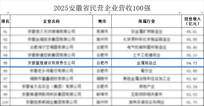 富煌集團(tuán)雙榜題名|榮登2025安徽省民營企業(yè)營收百強(qiáng)與制造業(yè)百強(qiáng)榜單