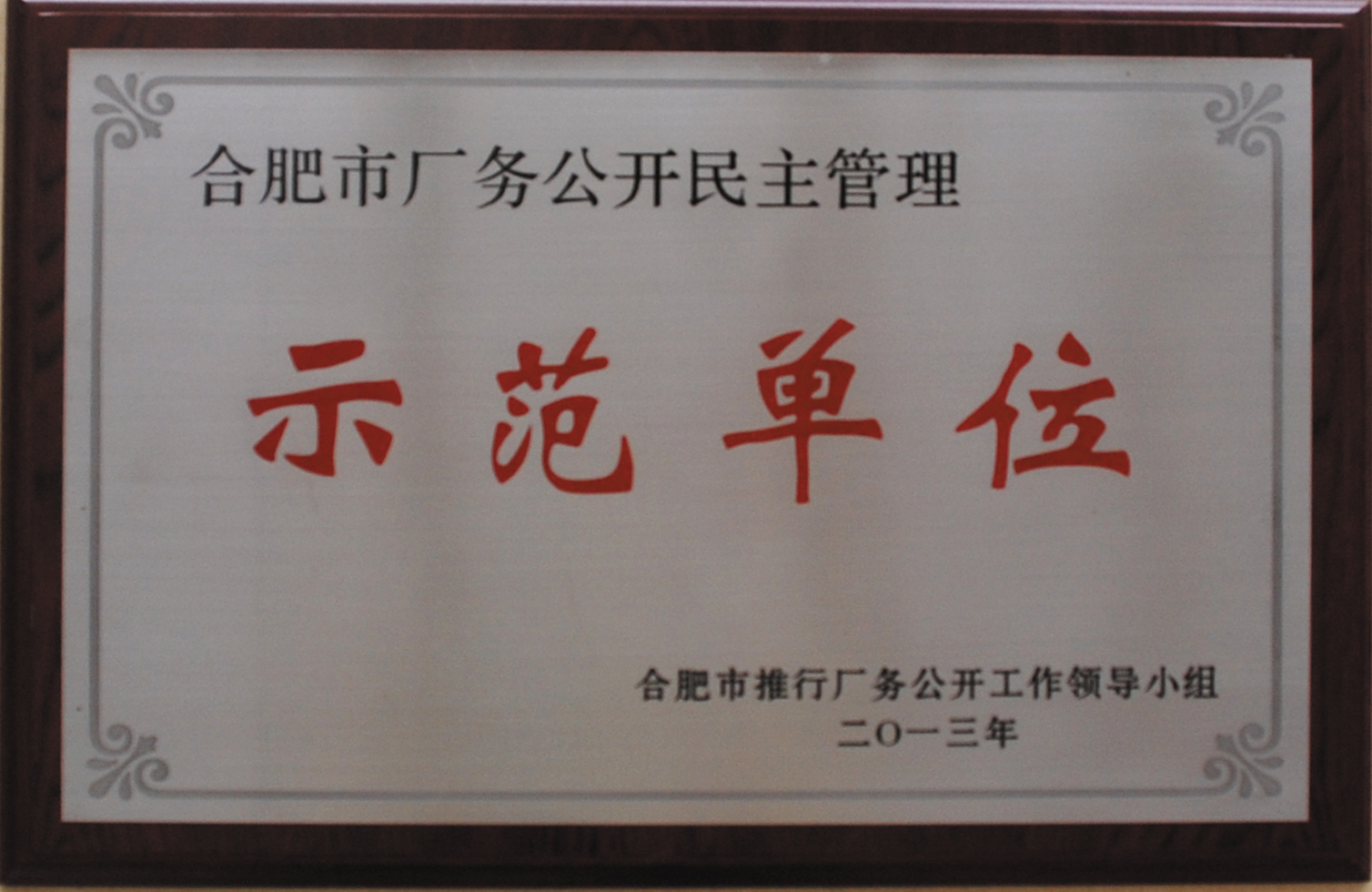 近日,富煌集團(tuán)被合肥市推行廠務(wù)公開工作領(lǐng)導(dǎo)小組授予“合肥市廠務(wù)公開民主管理示范單位”稱號。