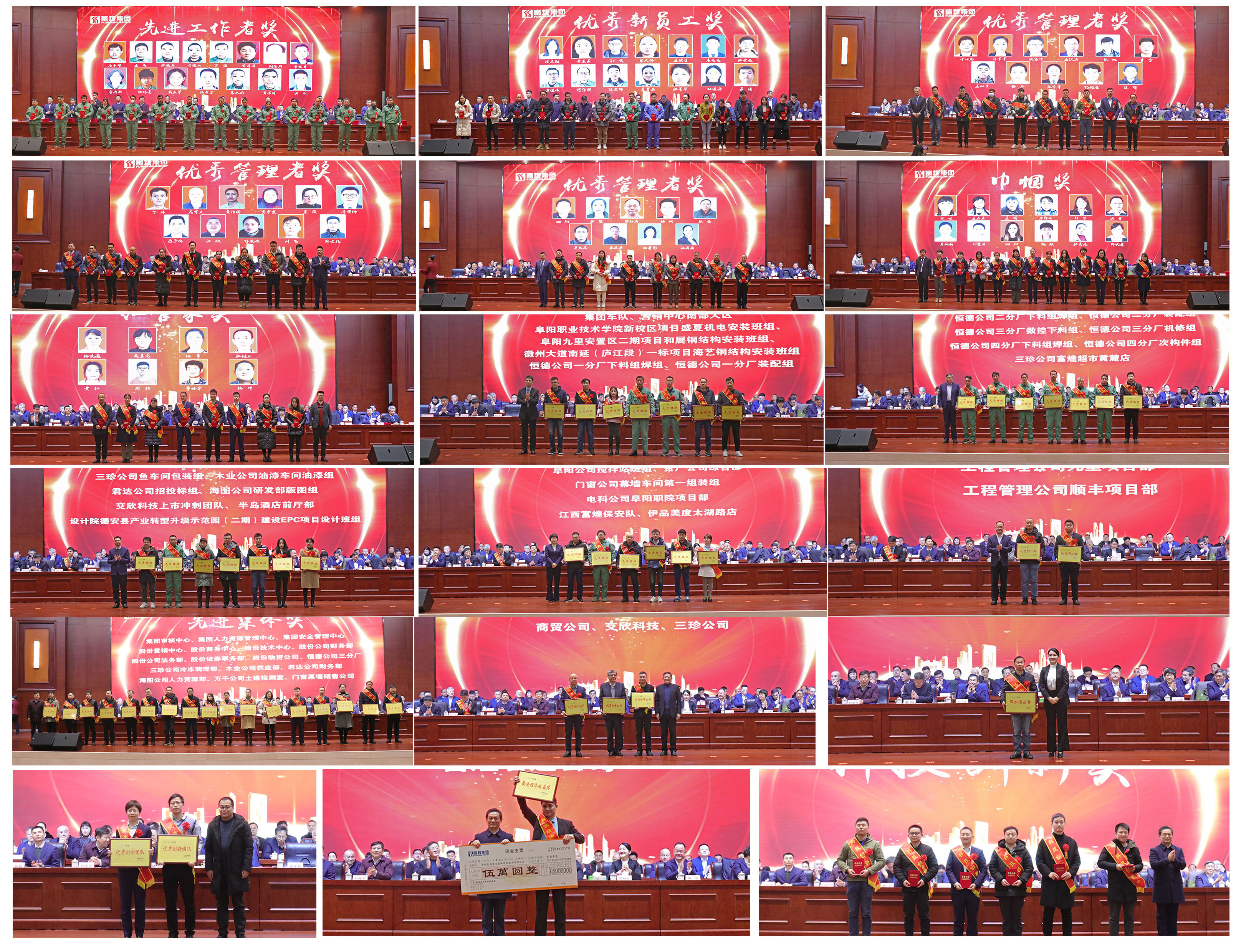 大會(huì)首先頒發(fā)了2021年度先進(jìn)工作者獎(jiǎng)、優(yōu)秀新員工獎(jiǎng)、優(yōu)秀管理者獎(jiǎng)、巾幗獎(jiǎng)、紅管家獎(jiǎng)、先進(jìn)班組獎(jiǎng)、優(yōu)秀項(xiàng)目部獎(jiǎng)、先進(jìn)集體獎(jiǎng)、優(yōu)秀分子公司獎(jiǎng)、降本增效獎(jiǎng)、優(yōu)秀創(chuàng)新團(tuán)隊(duì)獎(jiǎng)、最佳經(jīng)濟(jì)效益獎(jiǎng)、科技創(chuàng)新獎(jiǎng)。頒獎(jiǎng)結(jié)束后,先進(jìn)工作者代表交欣科技售前技術(shù)工程師楊彬、恒德公司制造部黃亞堃、優(yōu)秀管理者代表富煌鋼構(gòu)營(yíng)銷中心張帆、優(yōu)秀項(xiàng)目部代表工程管理公司王超、最佳經(jīng)濟(jì)效益獎(jiǎng)獲得單位代表富煌君達(dá)總經(jīng)理苗小冬作典型發(fā)言。