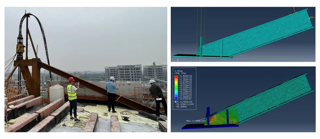 通過(guò)有限元仿真對(duì)提升全過(guò)程進(jìn)行模擬分析,確保結(jié)構(gòu)在動(dòng)態(tài)施工中的安全性與最終安裝精度。