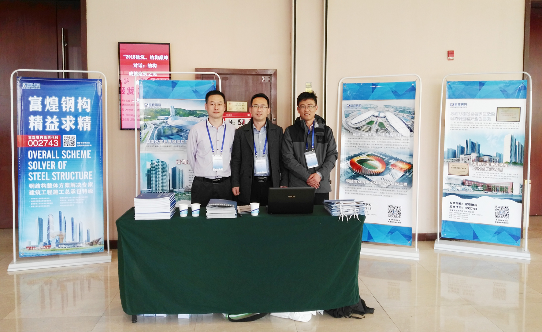 會議期間,會場外特設置展臺,展出行業(yè)內(nèi)知名建筑工程,富煌鋼構(gòu)所展示的相關(guān)代表性工程項目,吸引了眾多參會代表咨詢交流,并與富煌設計公司人員展開有關(guān)設計的深度對談。